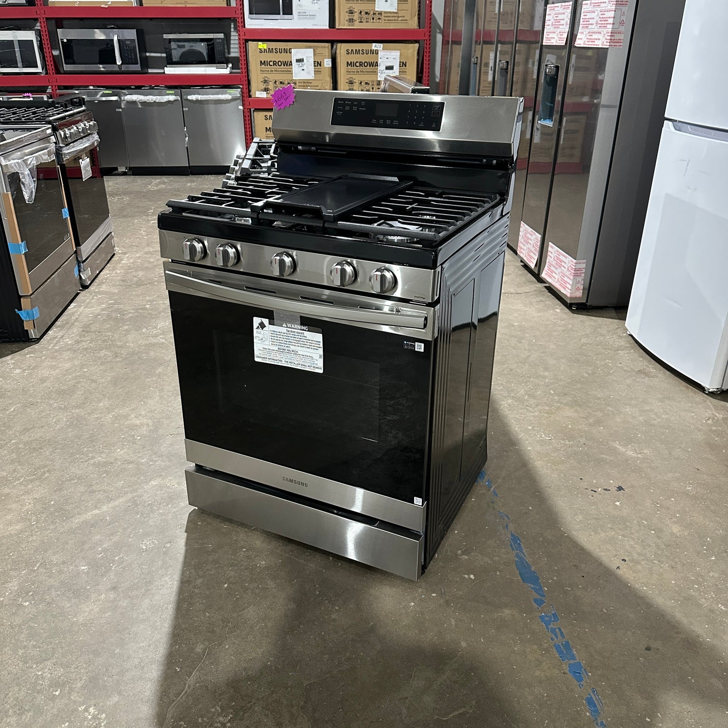 Samsung Stainless Steel Gas Range With 4 Burner With Warming Zone is backordered and will ship as soon as it is back in stock.